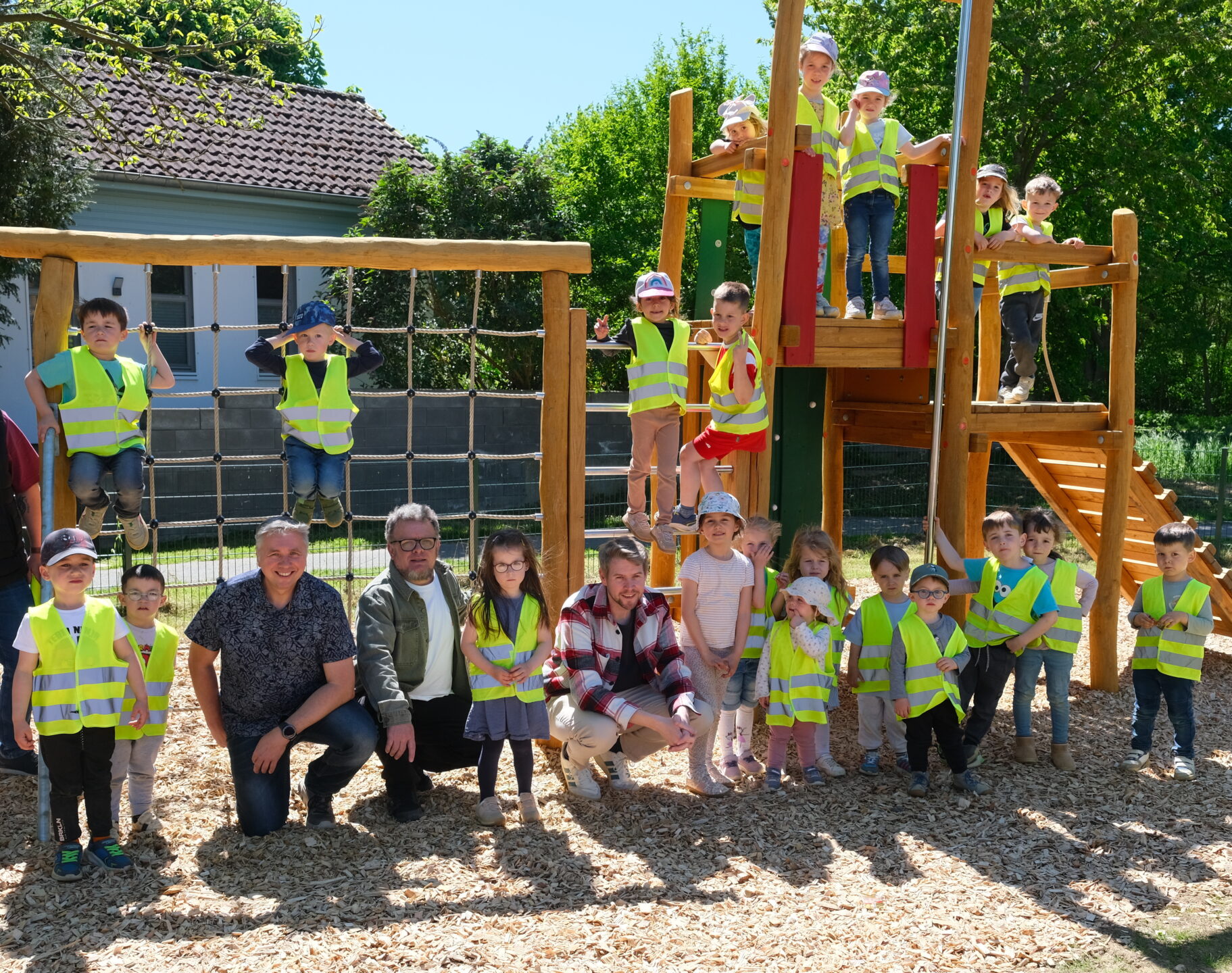 Heimerzheim. Endlich war es soweit: Der Spielplatz Quellenstraße konnte eröffnet werden. Bürgermeister Tobias Leuning, Ortsvorsteher Stephan Seitz und Kai Imsande vom Bürgerverein Odendorf durften den Spielplatz offiziell zum Bespielen freigeben. Der Spielplatz war auch prompt gefüllt – viele Ratsmitglieder, Bürgerinnen und Bürger und vor allem Kinder waren bei der Eröffnung dabei. Insbesondere die Kinder der Kita Quellenstraße spielten und tobten auf dem Spielplatz und testeten die neuen Spielgeräte.