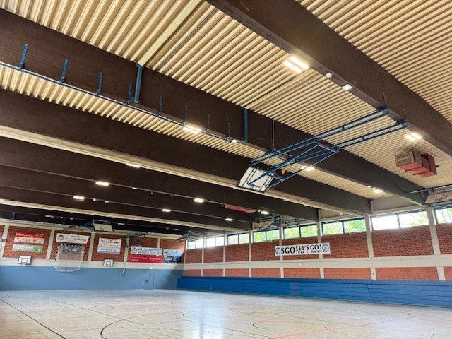 Die Arbeiten zur Erneuerung der Beleuchtung der Dreifachhalle Heimerzheim sind während der Sommerferien zwischen dem 12. Juli und dem 26. Juli 2025 erfolgt. Insgesamt wurden 288 Neonleuchten gegen 30 ballwurfsichere Hochleistungs-LED-Leuchten ausgetauscht. Das Leuchtensystem hat eine außenlichtabhängige Steuerung und verfügt über Präsenzmelder in jedem Hallendrittel. Durch die neue Beleuchtung kann die Dreifachhalle Heimerzheim bei einer täglichen Hallenbeleuchtung von circa 14 Stunden ihren jährlichen CO2-Ausstoß um circa 50 Tonnen reduzieren. Die Halle wird durch Schulsport sowie die Nutzung verschiedener Vereine und Institutionen in der Regel zwischen 8 und 22 Uhr genutzt. Der Stromverbrauch reduziert sich von 110.000 kWh auf rund 23.000 kWh pro Jahr.