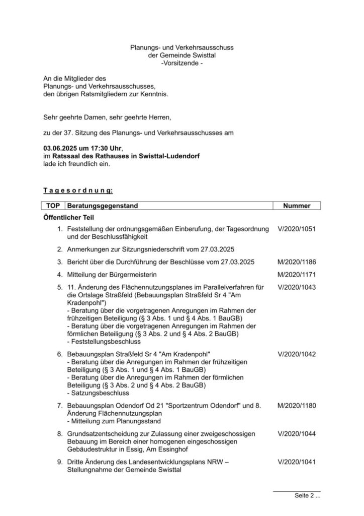Tagesordnung - Planungs- und Verkehrsausschuss - 03.06.2025 - 17:30 Uhr