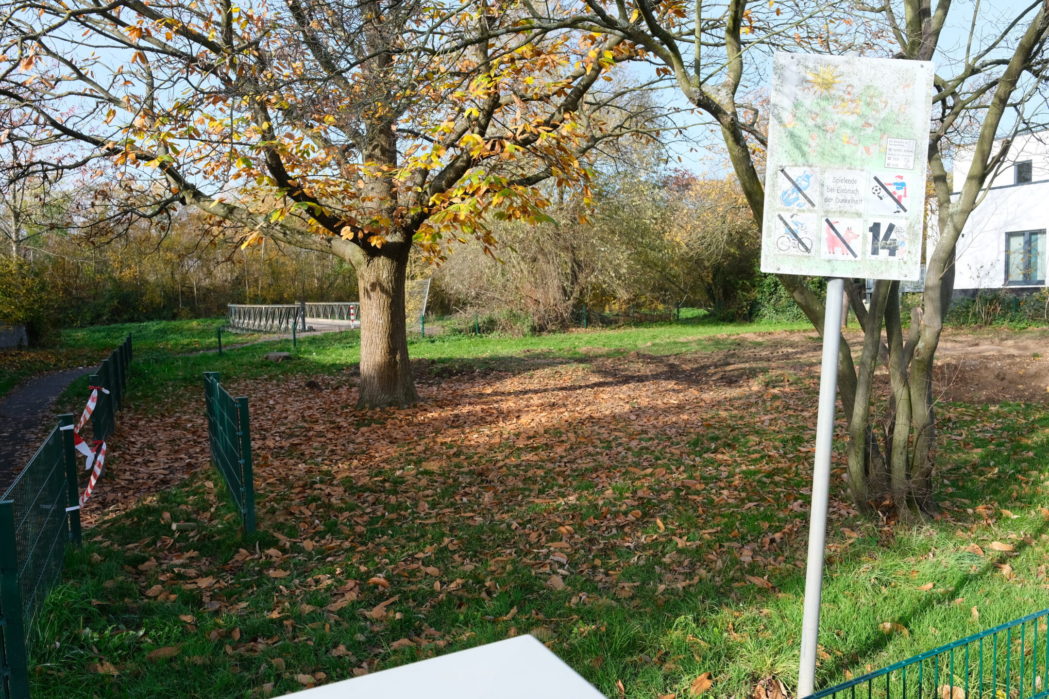 Nachdem die Geräte sowie der Sand und Fallschutz aufgebaut und eingebracht sind, wird ebenfalls neuer Naturrasen eingesät. Dieser wird in den kalten Wintermonaten nicht anwachsen können, sodass der Spielplatz erst im nächsten Frühjahr vollumfänglich fertiggestellt werden kann.