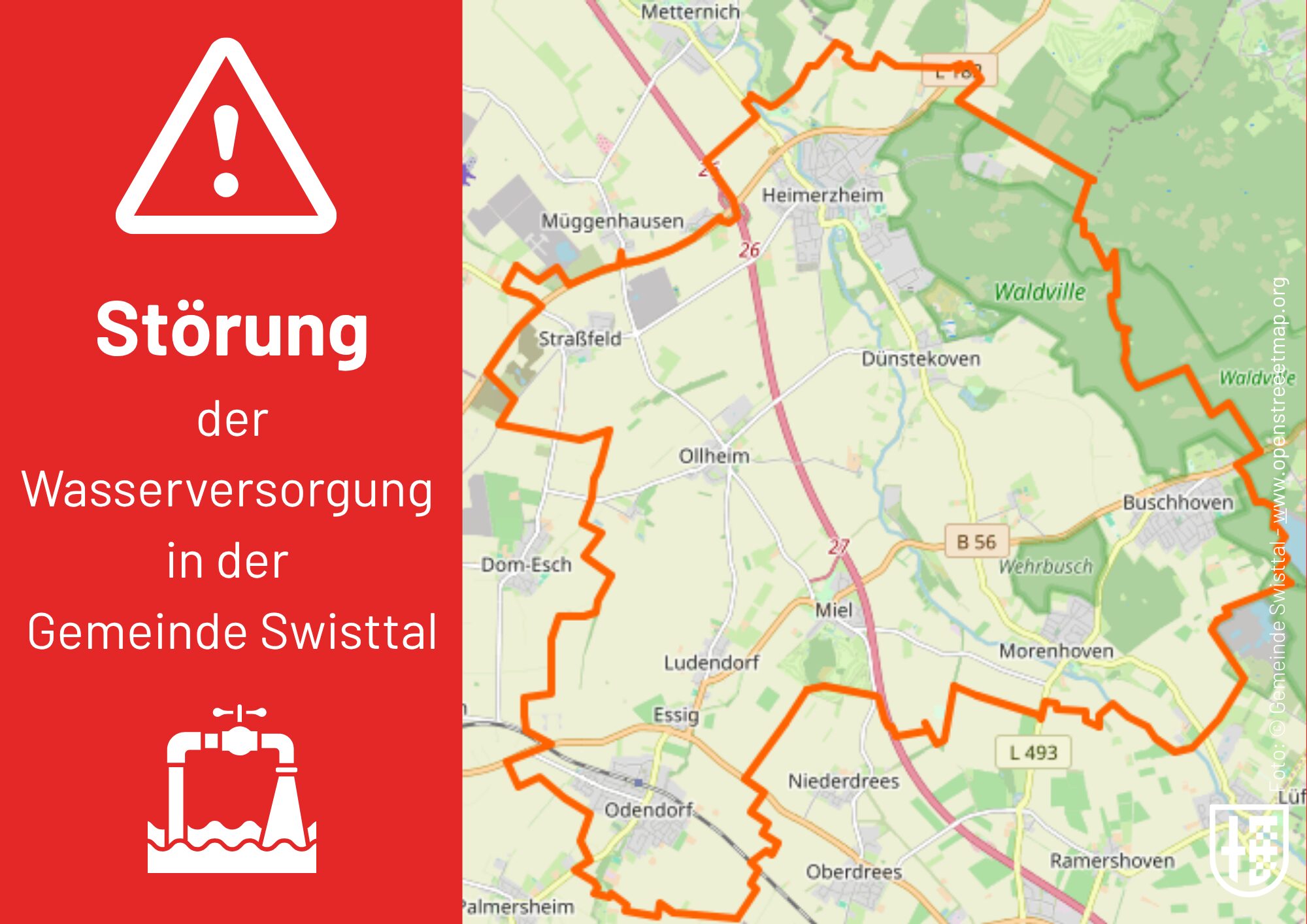 Durch die Störung kam es zu Beeinträchtigungen der Wasserversorgung von rund. 21.500 Einwohnerinnen und Einwohnern von Euskirchen (Dom Esch, Großbüllesheim, Kleinbüllesheim, Weidesheim, Wüschheim) und Swisttal (Buschhoven, Dünstekoven, Essig, Heimerzheim, Ludendorf, Miel, Morenhoven, Ollheim, Straßfeld).