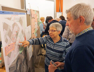 Unter Berücksichtigung von Leitfragen wie „Wo sehen Sie Handlungsbedarfe in Ihrem Ort?“, „Welche Veränderungen wünschen Sie sich?“, „Ist der Dorfplatz noch attraktiv?“ und „Wo halten Sie sich gerne auf und wo nicht? Warum ist das so?“, widmete sich der Abend der gemeinsamen Erarbeitung eines ISEKs für den Teilraum Swisttal-Buschhoven.
